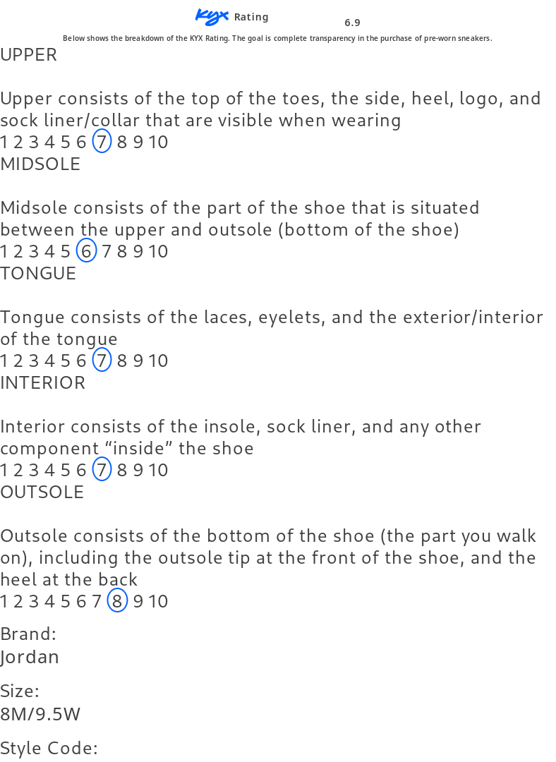 Below shows the breakdown of the KYX Rating. The goal is complete transparency in the purchase of pre-worn sneakers.